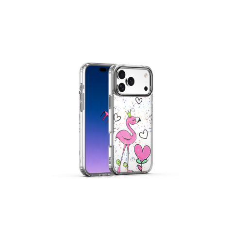 . A romantikus szív és a játékos flamingó motívumok kopás- és fakulásálló módon vannak felhordva.