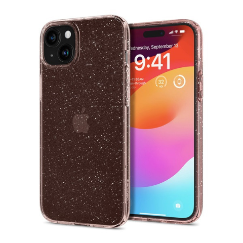 1 kép Apple Spigen Liquid Crystal Glitter Apple iPhone 15 Plus tok, csillámos rózsaszín átlátszó