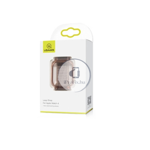 1 kép Apple USAMS ZB74IW2 Apple Watch textile, tépőzáras szíj és tok 44 mm, gold