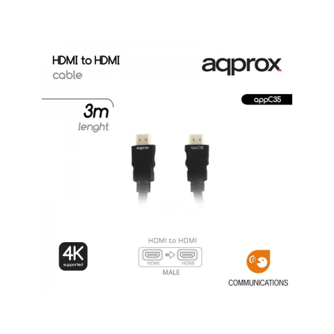 Approx APPC35 HDMI 1.4 kábel apa/apa 3m Black kábel és adapter 1 kép