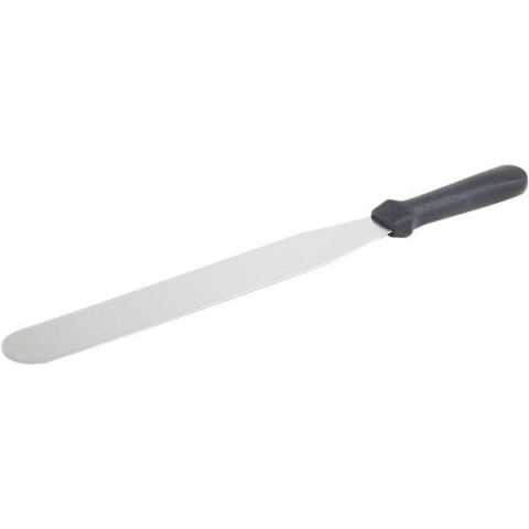 APS cukrászkés fekete, hőálló markolattal és rugalmas pengével megkönnyíti a krémek és mázak kenését. A kés teljes hossza 38 cm, a rozsdamentes acélból készült penge 25 cm hosszú és 4 cm széles. Ideális profi és házi cukrászok számára.
