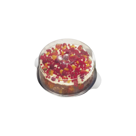 APS Elegance tálca fedéllel ideális torták, sütemények és egyéb cukrászati termékek tálalására és tárolására. A tálca átmérője 30 cm, rozsdamentes acélból készült. Az átlátszó fedél megóvja a tartalmat a kiszáradástól és a külső hatásoktól. A fedél magassága 110 mm. Az APS cég ismert a minőségi konyhai eszközök gyártásáról.