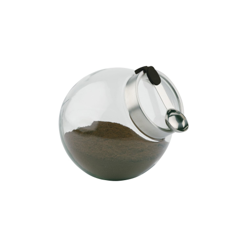 APS üveg élelmiszertároló doboz 3 literes űrtartalommal, ideális kávé és egyéb élelmiszerek tárolására. Menetes fedél aromazáró tömítéssel és rozsdamentes acélkanál mágneses szilikon nyéllel. Átmérő: 200 mm, magasság: 180 mm. Anyag: üveg.