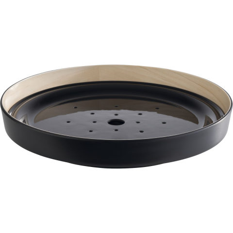 Az APS Frida fekete szervírozó tál lecsöpögtető betéttel melaminból készült. A tál magassága 60 mm, átmérője 330 mm. Ideális mártással vagy lével tálalt ételekhez, melyek a lecsöpögtető betétnek köszönhetően könnyen különválaszthatók. Alkalmas minden konyhába.