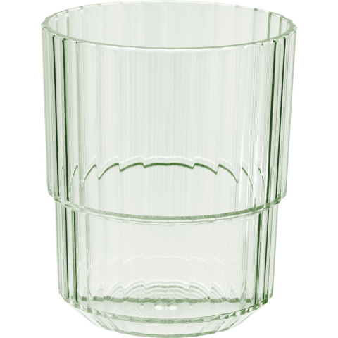 »Linea«Az elegánsan facettált poharak széleskörűen használhatóak bárban, klubban, medence környékén és büfében. Mind az átlátszó, mind a színes modellek nemes akcentusokat helyeznek el minden környezetben. Tökéletesen egymásra rakhatóak, ezért helytakarékosan tárolhatóak és szállíthatóak. Tartalom: 0,3 l Magasság: 100 mm ø: 85 mm Szín: világos zöld Anyag: Tritan