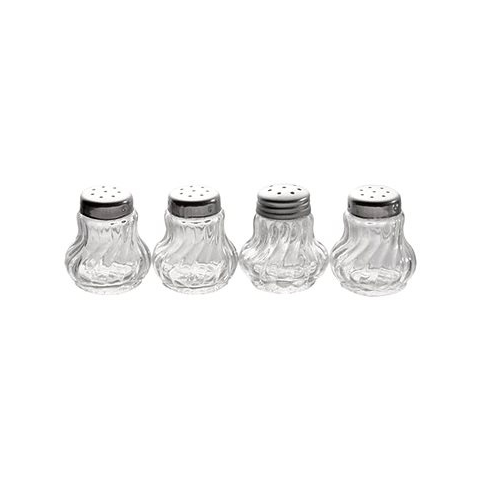 Asztali fűszertartó - 4 darabos készlet sóhoz, borshoz és fűszerekhez, anyaga üveg és acél, magassága 40 mm, mosogatógépben mosható Az átlátszó üvegből készült 4 darabos mini fűszertartó készlet só, bors és más fűszerek tárolására szolgál. Az APS 40503 szett mindössze 4 cm magas tartókat tartalmaz, így szinte alig foglal h