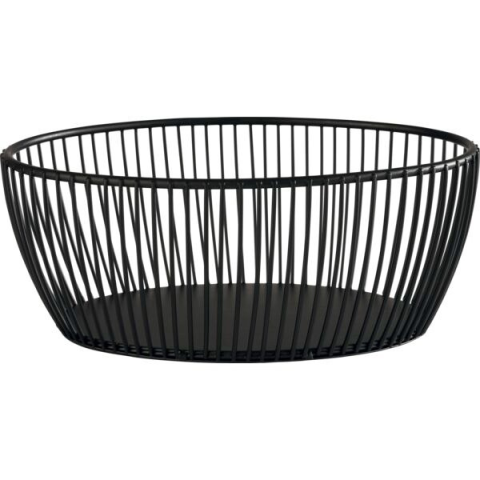 Kiváló minőségű fekete APS Svart fém kosár, ideális péksüteményekhez vagy gyümölcsökhöz. Ovális forma, méretei: 24x19 cm. Minimalista dizájn, stabil, könnyű és légies. Mosogatógépben mosható. Ideális büfékhez, kávézókhoz, cateringhez vagy stílusos otthoni tálaláshoz.