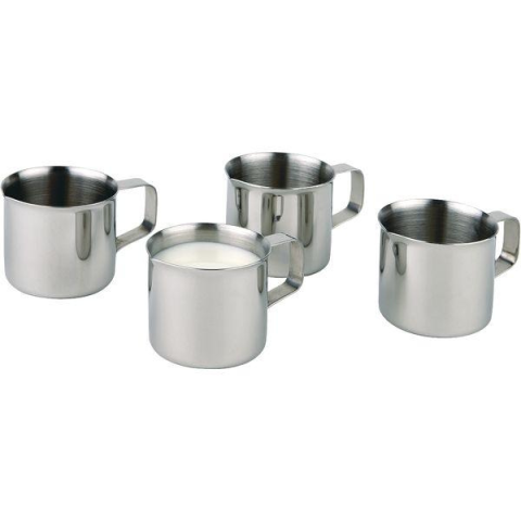 4 darabos APS rozsdamentes tejkiöntő készlet. Minden kiöntő 25 ml űrtartalmú, 18/10-es rozsdamentes acélból készült, és polírozott felületű. Ideális tej felszolgálásához kávéhoz vagy teához.