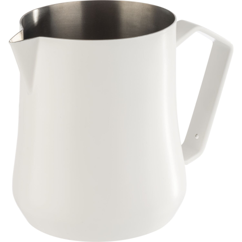 Az APS fehér rozsdamentes tejkanna ideális a tejhab készítéséhez. 750 ml űrtartalommal, 115 mm magas és 95 mm átmérőjű. Rozsdamentes acélból készült, kívül fehér porfestékkel bevonva, belül mattra polírozva. Az alján gravírozás található. Alkalmas otthoni és professzionális használatra.