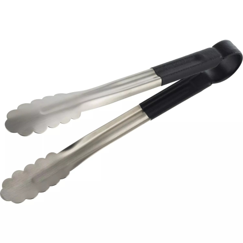 Az APS univerzális csipesz, 300 mm hosszú, ideális a forró ételek kezeléséhez. A fekete markolat kényelmes és biztonságos fogást biztosít. Minőségi anyagokból készült, hosszú élettartammal. A csipesz alkalmas professzionális és otthoni használatra.