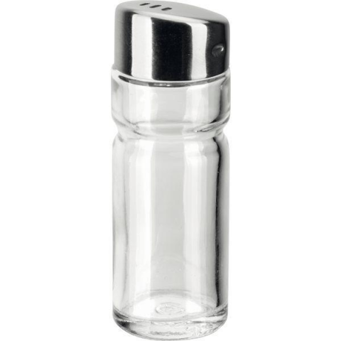 Univerzális üveg só- vagy borsszóró APS rozsdamentes acél fedéllel és 3 nyílással. Alkalmas minden konyhába és étkezőbe. Magasság: 90 mm, átmérő: 30 mm.