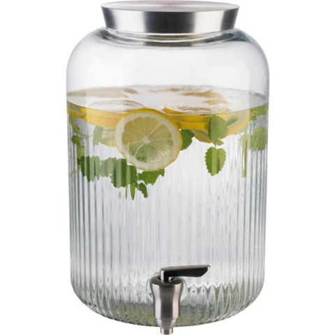 Üveg italadagoló csappal és rozsdamentes tetővel ellátva. Nem alkalmas forró italokhoz! Mindig el kell mosni a használat előtt és után kézzel és hideg vízzel. Tökéletes házi limonádé, jeges tea és gyümölcs dzsúsz felszolgálására akár partikon, akár grillezéskor.