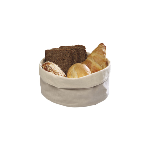 Bézs pamutból készült APS péksüteménykosár, felhajtással állítható magassággal. Mosógépben mosható 30 °C-ig. Kerek vagy ovális, magassága 80 mm és átmérője 200 mm. Ideális péksütemények tálalásához.