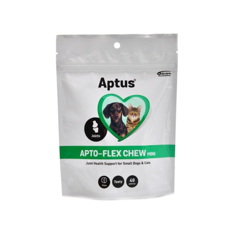 Apto-Flex ízületet támogató rágótabletta mini a kistestű kutyáknak és macskáknak csirkemáj ízesítéssel Az Apto-Flex ízületet támogató csirkemáj ízesítésű rágótabletta az ízület egészségét támogatja glükózaminnal, MSM-mel, kondroitinnal és hialuronsavval, hogy az ízület komfortos, hajlékony és mozgásképes legyen. Az Apto-Flex rágótabletta Mini a kistestű kutyáknak és macskáknak ajánlott, ha ízületvédelemre van szükségük. Adagolás: 5 ttkg alat