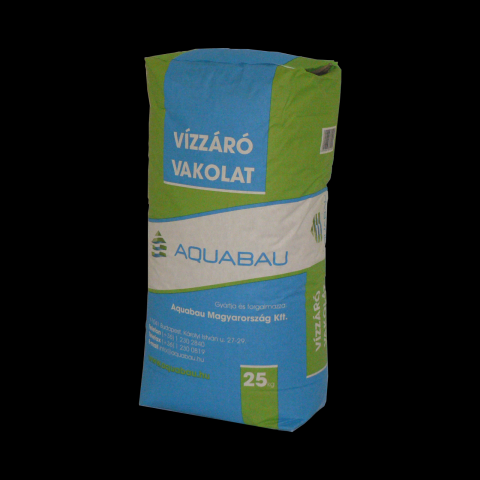 Aquabau vízzáró vakolat- 25 kg- felhasználásra kész, gyárilag előkevert, por alakú, cement és mészkötésű, adalékanyagot tartalmazó száraz habarcs- anyagszükséglet: kb. 15-16 kg/m2/1 cm- különböző okokból átnedvesedett falazatok víz elleni szigetelésére;- pozitív, illetve negatív oldali víznyomás elleni szigetelésre egyaránt alkalmas;- alkalmas utólagos falszigetelés (rozsdamentes acéllemez besajtolás, falátvágásosszigetelés, injektálásos falszigetelés