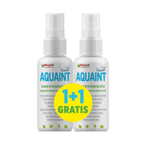 Aquaint Természetes Fertőtlenítő Folyadék 2x50ml – Tiszta kezek, biztonságos játékok, vegyszerek nélkül! Ez a 100%-ban természetes fertőtlenítő már újszülött kortól használható, nem tartalmaz alkoholt, illatanyagot vagy káros anyagokat. Praktikus, zsebmér