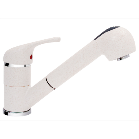 Az Aquasanita Rondo 2581 konyhai csaptelep egy hagyományos modell kihúzható zuhannyal, valamint az egyenes és a zuhanyáramlás közötti átkapcsolással.