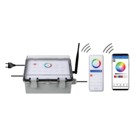 Olyan több csatornán működő vezérlő egység, amely távirányítóval és WIFI kapcsolaton keresztül telefonos alkalmazással is programozható és vezérelhető.