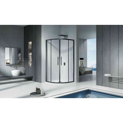 1 kép Aquatrend Zuhanykabin 90x90x190cm íves, fekete, Quick 334 Aquatrend