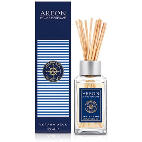 Pálcás aroma diffúzor - akár 61 nap hatással, 10 pálca, űrtartalma 85 ml Teremts otthonodban kellemes és meghitt hangulatot az Areon Home Perfume légfrissítő segítségével. Ez az egyedülálló Verano Azul diffúzor 10 speciális porózus pálcika segítségével árasztja a napfényes