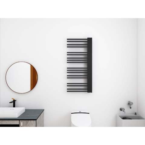 Az Arezzo Design fürdőszobai törölközőszárító radiátor modern formavilágának és praktikusságának köszönhetően kiváló választásnak bizonyul. Minimál stílusú, szögletes profilú csőradiátor matt fekete színben magas minőségű acél felhasználásával készül.