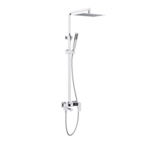 1 kép    Arezzo design Cubefield króm egykaros kerámiabetétes 3 funkciós zuhanyrendszer zuhanyszettel, esőztetővel, kádtöltő csapteleppel