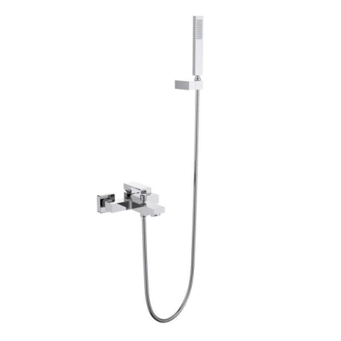 1 kép Arezzo design Cubefield króm fali egykaros kerámiabetétes kádtöltő csaptelep zuhanyszettel
