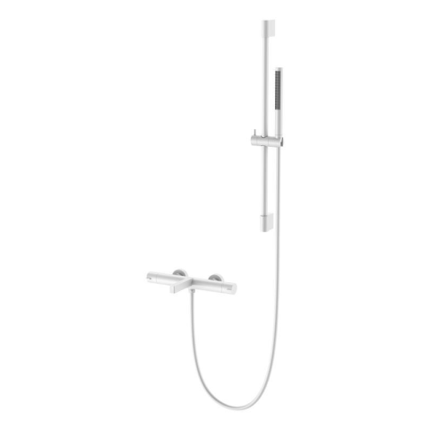 Arezzo Design Elegant matt fehér fali egykaros termosztatikus kádtöltő csaptelep zuhanyszettelPrémium minőségű, falra szerelhető termosztatikus kádtöltő csaptelep, amely elegáns megjelenésével és precíz hőfokszabályozásával maximális kényelmet biztosít. M