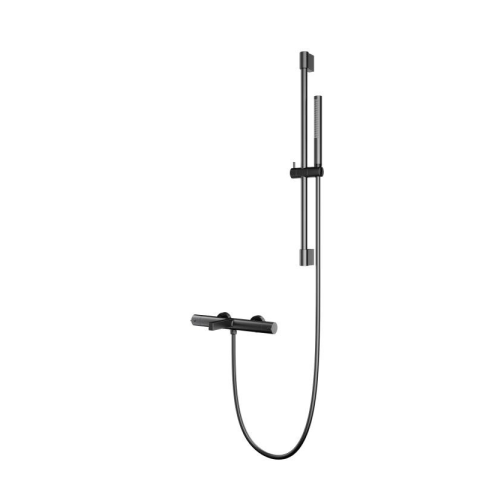 Arezzo Design Elegant metál szürke, gun metal fali egykaros termosztatikus kádtöltő csaptelep zuhanyszettelPrémium minőségű, falra szerelhető termosztatikus kádtöltő csaptelep, amely elegáns megjelenésével és precíz hőfokszabályozásával maximális kényelme