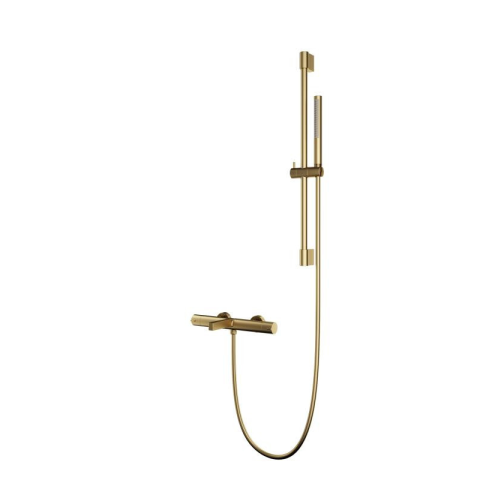 Arezzo Design Elegant szálcsiszolt arany fali egykaros termosztatikus kádtöltő csaptelep zuhanyszettelPrémium minőségű, falra szerelhető termosztatikus kádtöltő csaptelep, amely elegáns megjelenésével és precíz hőfokszabályozásával maximális kényelmet biz