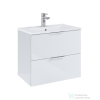 Mosdószekrény és mosdótál szettben. TECHNIKAI LEÍRÁS: - összeszerelt termék - szín: fényes fehér - korpusz és front 16 mm-es farostlemez - lágy záródású fiókok - kerámia mosdó - fehér alumínium fogantyú - 2 db állítható fém fali akasztó, összesen 90 kg t