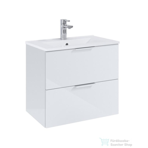 Mosdószekrény és mosdótál szettben. TECHNIKAI LEÍRÁS: - összeszerelt termék - szín: fényes fehér - korpusz és front 16 mm-es farostlemez - lágy záródású fiókok - kerámia mosdó - fehér alumínium fogantyú - 2 db állítható fém fali akasztó, összesen 90 kg t