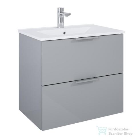 Mosdószekrény és mosdótál szettben. TECHNIKAI LEÍRÁS: - összeszerelt termék - szín: világosszürke lakkozott magasfényű felület - korpusz és front 16 mm-es farostlemez - lágy záródású fiókok - kerámia mosdó - világosszürke alumínium fogantyú - 2 db állíth