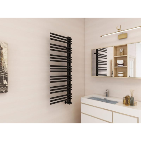 Az Arezzo Design fürdőszobai törölközőszárító radiátor modern formavilágának és praktikusságának köszönhetően kiváló választásnak bizonyul. Minimál stílusú, szögletes profilú csőradiátor matt fekete színben magas minőségű acél felhasználásával készül.