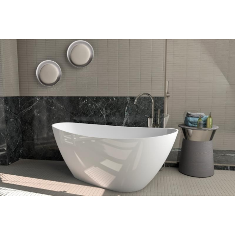 1 kép Arezzo design PALMYRA öntöttmárvány szabadon álló fényes fehér kád, click-clack lefolyóval