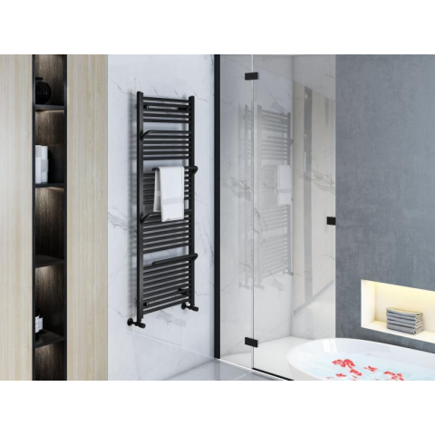 Az Arezzo Design fürdőszobai törölközőszárító radiátor modern formavilágának és praktikusságának köszönhetően kiváló választásnak bizonyul. Minimál stílusú, szögletes profilú csőradiátor matt fekete színben magas minőségű acél felhasználásával készül.