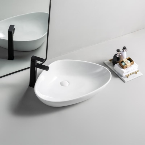 1 kép    Arezzo design Toronto 59x39 cm mosdótál, fényes fehér intelligens bevonattal
