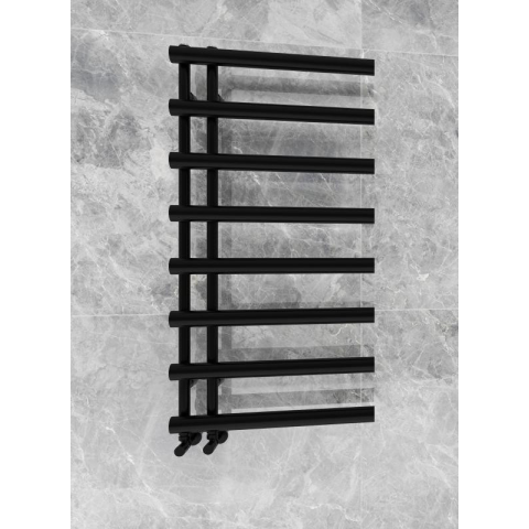 Az Arezzo Design fürdőszobai törölközőszárító radiátor modern formavilágának és praktikusságának köszönhetően kiváló választásnak bizonyul. Minimál stílusú, szögletes profilú csőradiátor matt fekete színben magas minőségű acél felhasználásával készül.