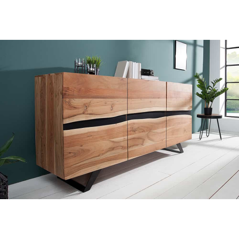 Stílusos komód Argentinas 150 cm akác Egy olyan komódot keresel, amely bőséges tárolóhelyet kínál, és egyedi designjával is kitűnik? Ez az impozáns, tömör akácfából készült komód garantáltan lenyűgöz majd. A bútor különleges