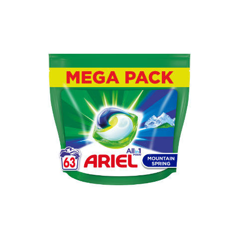 Teljes ARIEL All-in-1 PODS folyékony mosókapszula Mountain Spring 63 Mosáshoz termékleírás