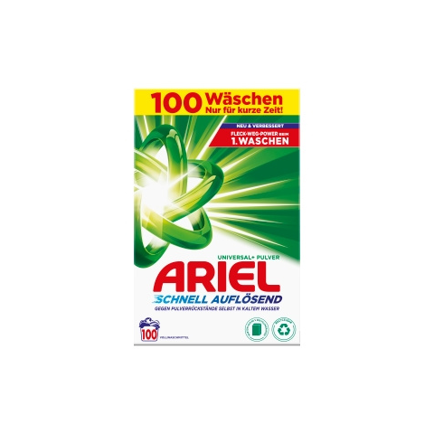 Az Ariel Univerzális mosópor hatékonyan távolítja el a makacs foltokat, miközben megőrzi a színes ruhák élénk színét. Korszerű formulája már alacsony hőmérsékleten is tökéletes tisztaságot biztosít, friss illattal és akár 100 mosásra elegendő kiszerelésb