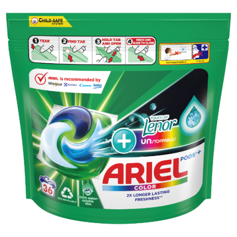 Teljes ARIEL Touch Of Lenor Unstoppables All-in-1 PODS Mosókapszula 36Mosásho termékleírás