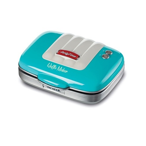 Az Ariete gofrisütő a retro design-nak köszönhetően nagyszerű kelléke lehet egy házibulinak is.