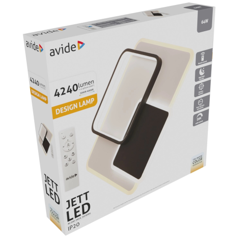 Avide Fényszín változtatható fehér (TW) Színhőmérséklet 3000-6500 K Funkció memória, éjjeli fény, időzítő Egyéb funkció dimmelhető Szabályozható távirányítóval (tartozék) Névleges feszültség 200-265 V Fényáram 4 240 lm Anyag műanyag, fém Szín fekete, fehér Sugárzási szög 120 ° Színvisszaadás CRI 80 Lámpatest átlagos élettartam 25 000 óra Lámpatest fényáram 4240 lm Lámpatest teljesítmény 64 W LED modul Fényforrást tartalmazza? LED modul Védett