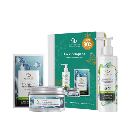 Hidratáló naturkozmetikai szett kollagénnel, hialuronsavval, értékes növényi kivonatokkal és vitaminokkal. Szett tartalma: Armonía Kollagén arckrém hialuronnal, E-vitaminnal 50ml: Ránctalanító és bőrfeszesítő kollagén arckrém hialuronsavval, olíva o