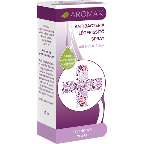 Aromax Zrt. Aromax antibacteria légfrissítő spray levendula-teafa 20ml tisztító- és takarítószer, higiénia termékleírás