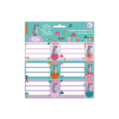 1 kép Ars Una : Cuki állatok - Cica mintás csomagolt füzetcímke 3x6db-os
