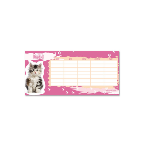 A macskák nem véletlenül hódították meg az internetet, hiszen számtalan felnőtt és gyerek rajong értük, így ennek az órarendnek is nagy sikere lesz, ráadásul a méretét is úgy választották meg, hogy a legtöbb tolltartóban kényelmesen elférjen. A kemény papírból készült órarend tökéletesen alkalmas arra, hogy a tolltartódban emlékeztessen téged a s