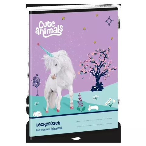 Varázsold el gyermeked iskolai hétköznapjait a Cute Animals Unikornis mintás leckefüzettel! Ez az A/5 méretű, 38 lapos füzet mesés dizájnjával már az első pillantásra elnyeri a gyerekek tetszését. A borítón egy bájos unikornis látható csillogó patákkal, álomszép háttérrel, virágzó fákkal, csillagokkal és aranyos nyuszikkal. A lila és türkiz árn
