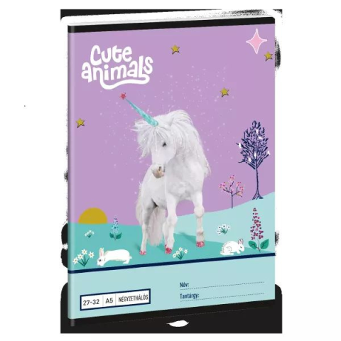 Varázsold színesebbé és élvezetesebbé gyermeked iskolai napjait ezzel a mesés Cute Animals unikornis mintás négyzethálós füzettel! Az A/5 méretű, 32 lapos füzet tökéletes társ a matematikaórákon, de akár rajzoláshoz és kreatív feladatokhoz is remek választás. A borítón szereplő bájos unikornis egy csodás, mesebeli világba repíti a kicsiket: a li